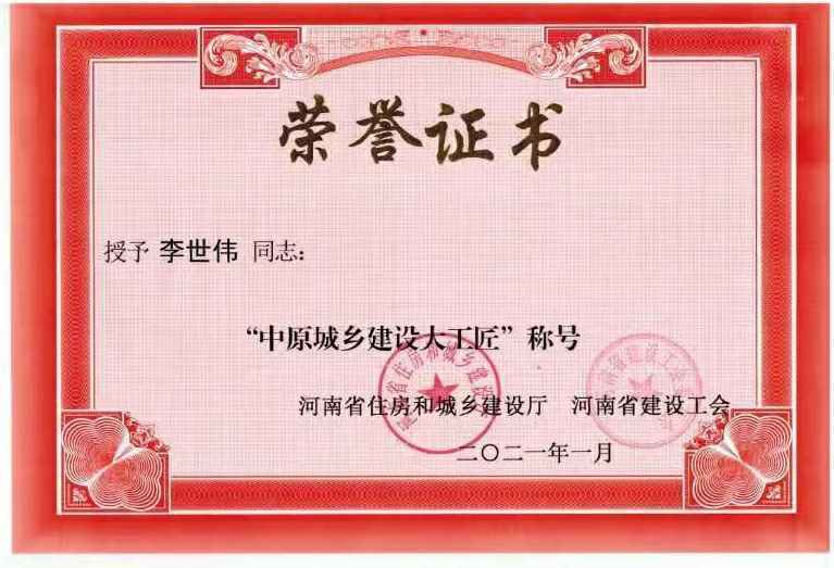 122021.05开云·官方端页面网站登录入口-开云online(中国)李世伟同志获“中原城乡建设大工匠”称号 -